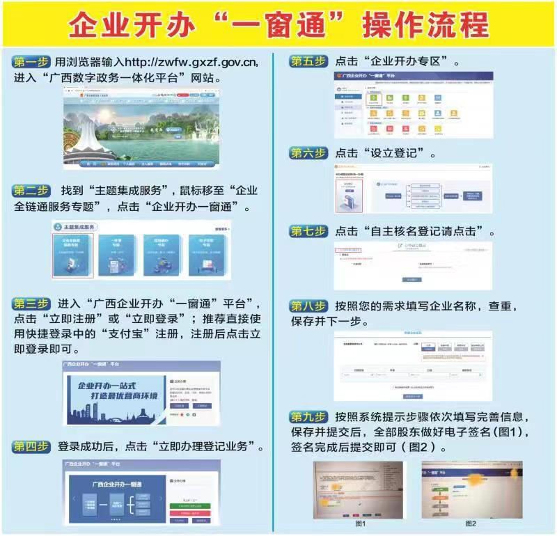 您可以在广西企业开办“一窗通”平台线上办理企业等各类市场主体的登记(变更、备案、注销、增减补换照)等业务,首次进入平台请以个人身份注册、登录。