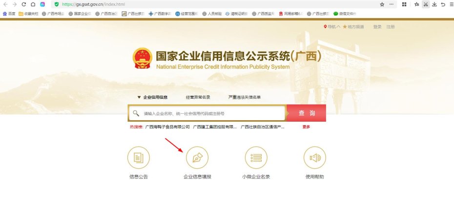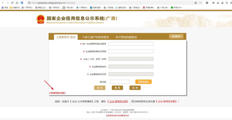 六、其他事项如需详细了解年报申报有关事宜,请登录国家企业信用信息公示系统(广西),点击页面下方“企业信息填报”,进入填报登陆页面,点击“年报填写操作指南”进行查看。