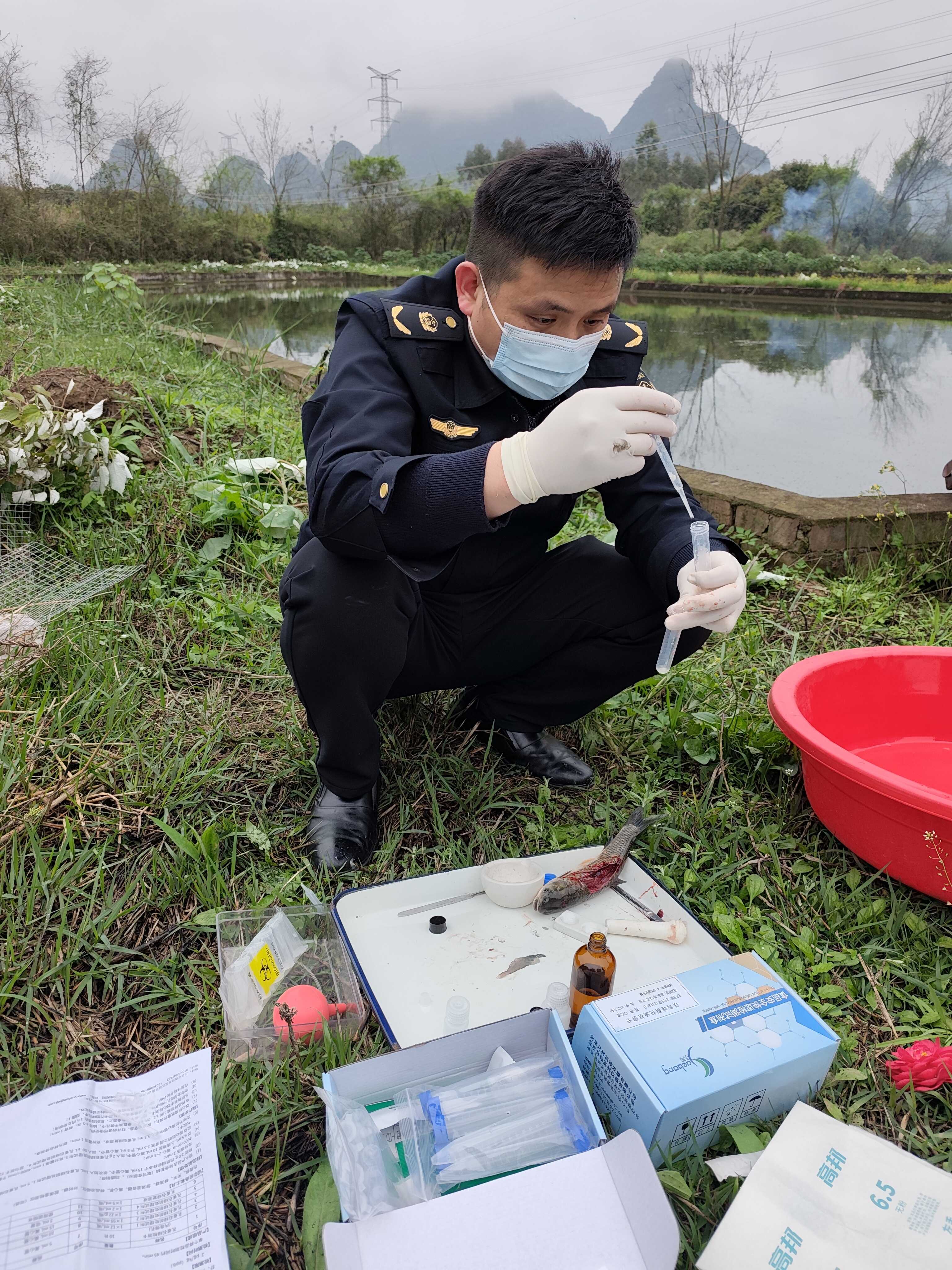 在绿水青山的环抱中,永福县水产品养殖业正蓬勃生长。为守护好这一方“蓝色产业”,保障群众“舌尖上的安全”,我县农业农村局执法队伍扎根一线,以常态化快速检测为抓手,将质量安全监管触角延伸至塘边池畔,全力筑牢水产品质量安全“第一道防线”。