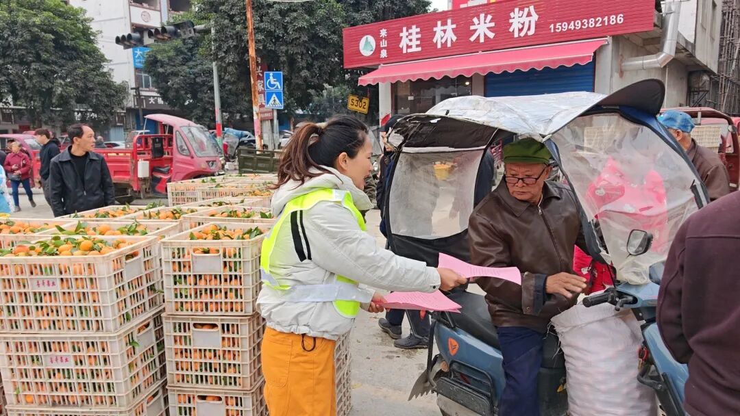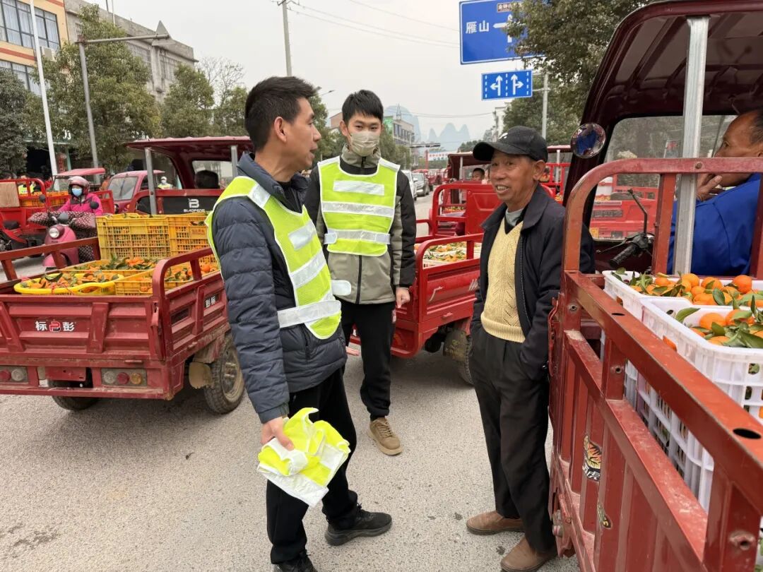 本次整治行动以“疏堵结合、引摊入室、还路于民”为原则,将加油站800米大道沿线列为核心整治区域,重点规范沙糖桔交易行为。结合群众出行需求与交易习惯,经广泛征求意见后明确,该路段每日7:30至17:30实行交通管制,严禁任何形式的沙糖桔占道交易;允许交易时段调整为17:30至23:00,且需在道路两侧预留足够通行空间。