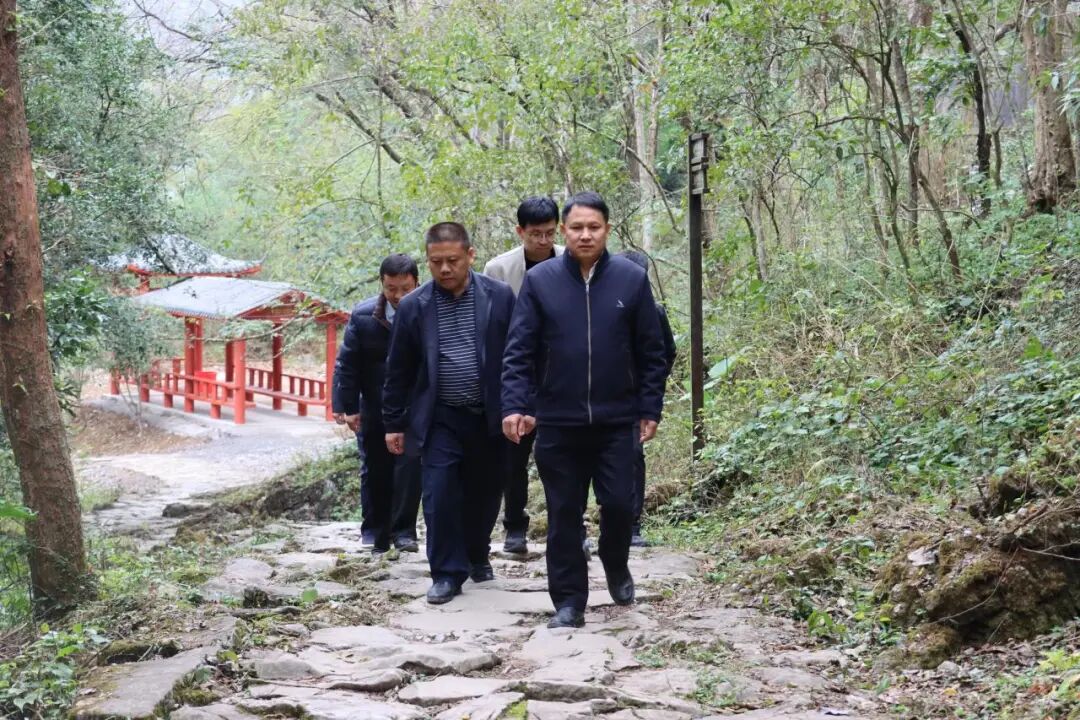 12月16日,县委书记韦文周深入百寿镇,实地调研红枫谷、穿岩古道景区文旅发展情况。他强调,要立足优质自然资源,以完善设施、优化服务为抓手,筑牢安全防线,打造独具魅力的特色景区,让生态优势转化为文旅发展动能。县委副书记蒋闻、县人大常委会副主任石羽参加调研。