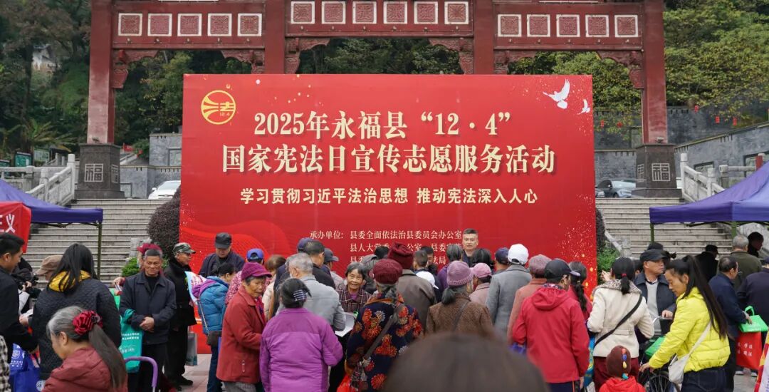 12月4日,永福县委全面依法治县委员会办公室联合县委宣传部、县司法局开展以“学习贯彻习近平法治思想,推动宪法深入人心”为主题的“12·4”国家宪法日暨“宪法宣传周”活动。县领导宁顺彪、石羽、黄成龙、万钦红参加活动。