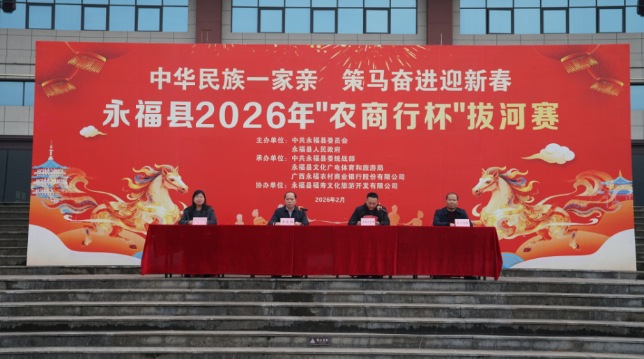 2月23日(正月初七),永福县“中华民族一家亲 策马奋进迎新春”“农商行杯”拔河赛在永福剧院广场热血开赛,上演了一场精彩的力量与团结的较量,丰富了干部群众春节期间的文化体育生活。县委常委、统战部部长李忠德出席活动。