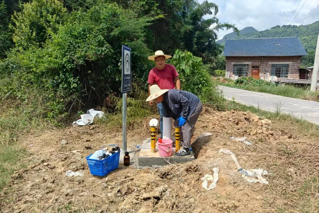 在永福县发源矿产品加工有限公司尾矿库开展地下水采样监测 永福生态环境局供图
