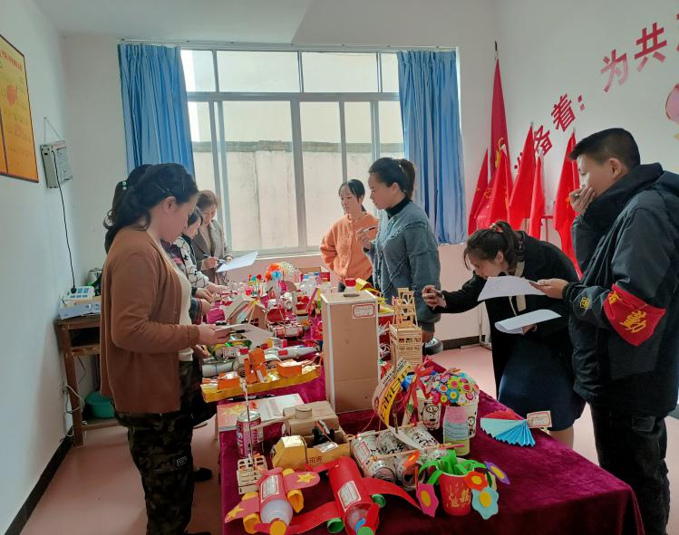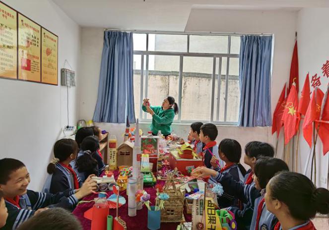 上潘小学位于风景优美的樟峡村上潘屯,2022年春季学期学校充分利用地域优势和创建绿色校园的契机,课后服务开设了“科技环保手工”课程,学校创建了“指尖创意我在行,环保创新我主张”手工制作小课堂,进一步唤起同学们的环保意识,增强全体师生关爱家园、保护环境的意识,引导学生了解“世界环境日”,践行“低碳环保生活”,发动学生进行指尖创意,环保创新,用废旧物品和无限创想为美化校园环境添上了绚丽的一笔。