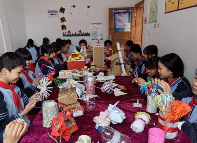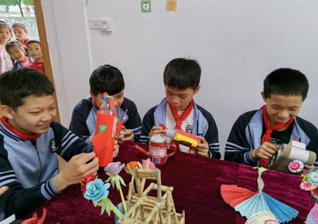 “双减”政策背景下,我们秉持“办有温度的教育”,为了提高学生的动手动脑能力,加强学生的环保意识,让学生更好地践行科技环保手工教育理念,也为了丰富学生的课后服务活动,促进学生的全面发展,让“双减”工作落到实处,永福县永福镇上潘小学跳出“死记硬背”的思想约束,结合项目化学习,主题式综合活动,将环保教育与科学、美术等课程进行了创新融合,创建了上潘小学“指尖创意我在行,环保创新我主张”科技环保手工制作课堂。