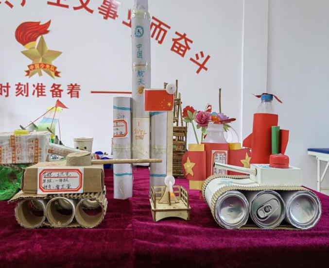 该课程受到了学生和家长们的大力支持,孩子们和父母一起动手收集家中废弃的饮料瓶、小纸箱、毛线等材料,带到学校作为手工材料。课堂上孩子们利用收集来的材料,充分发挥想象,用灵巧的双手制作成科技手工作品(火箭 、潜水艇、房子、剪纸、插花、交通工具等),并以此呼吁人们保护环境,做到人与自然和谐共存。