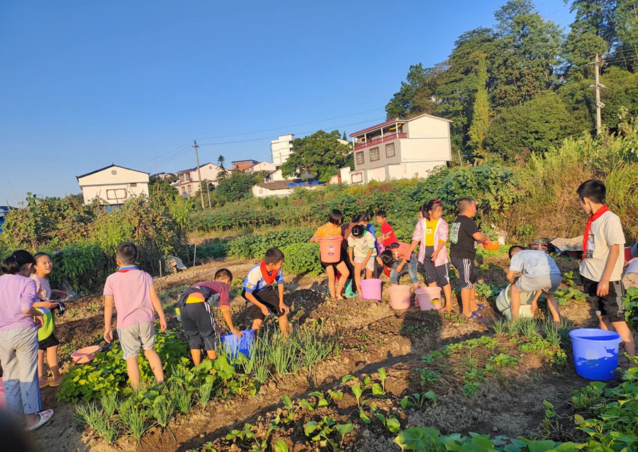 在第二明德小学校园附近,一块班级劳动教育实践基地,里面有一片片规划整齐的小田垄,种植着大豆、玉米、丝瓜、葱蒜、白菜等作物。教师利用劳动课和综合实践课让学生们参与选种、松土、浇水、施肥、除草等种植过程。学校不仅把劳动带进课堂,更把课堂搬到了田间地头,让劳动教育“落地生根”。