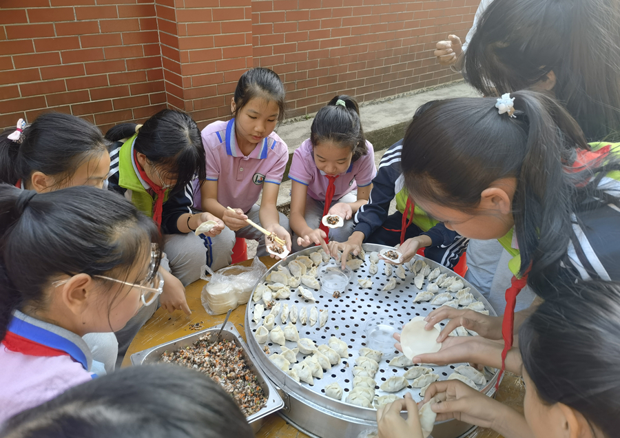 本学期,学校还打造了专门的劳动课厨房,高年级一开学就教起了做家常菜等技能,在劳动课上教孩子们做起了手工包子、饺子、南瓜饼等各类美食。低年级则注重培养学生们扫地、自己穿戴、整理书包、做沙包、手工制作等基础的生活生存技能。