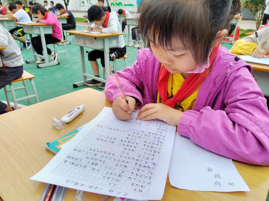 本次竞赛分为三个环节,每个环节40分钟,依次是古诗词默写、数学计算和英语单词默写。竞赛过程中,同学们争分夺秒、全神贯注地对待每一题、每一字。