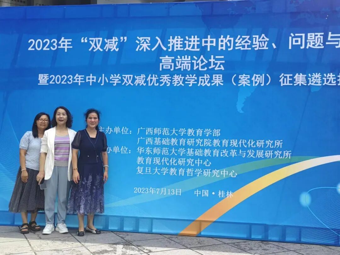 “双减”背景下,教学改革是我们教学质量稳步提升的主旋律。于2023年7月13日,我校语文教研组的廖胜月老师十分荣幸地和永福县教育局教研室课题专家林雪荣老师、永福县第二明德小学陈惠校长一起受邀出席广西师范大学教育学部举办的“2023年‘双减’深入推进中的经验、问题与对策”高端论坛。