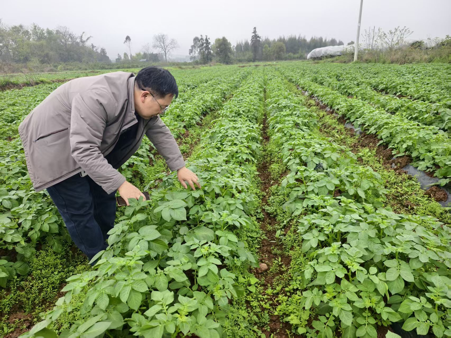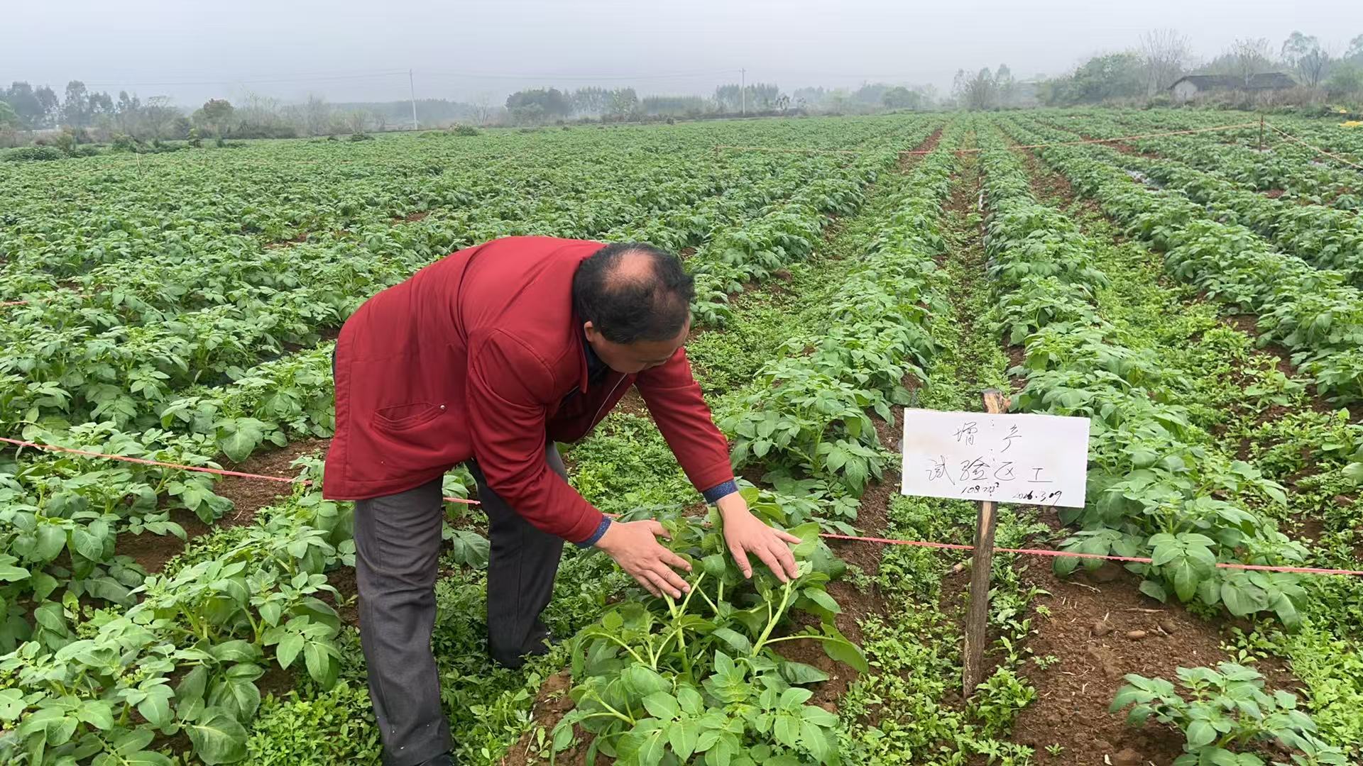 县推广站站长、高级农艺师陶尚林实地了解马铃薯长势