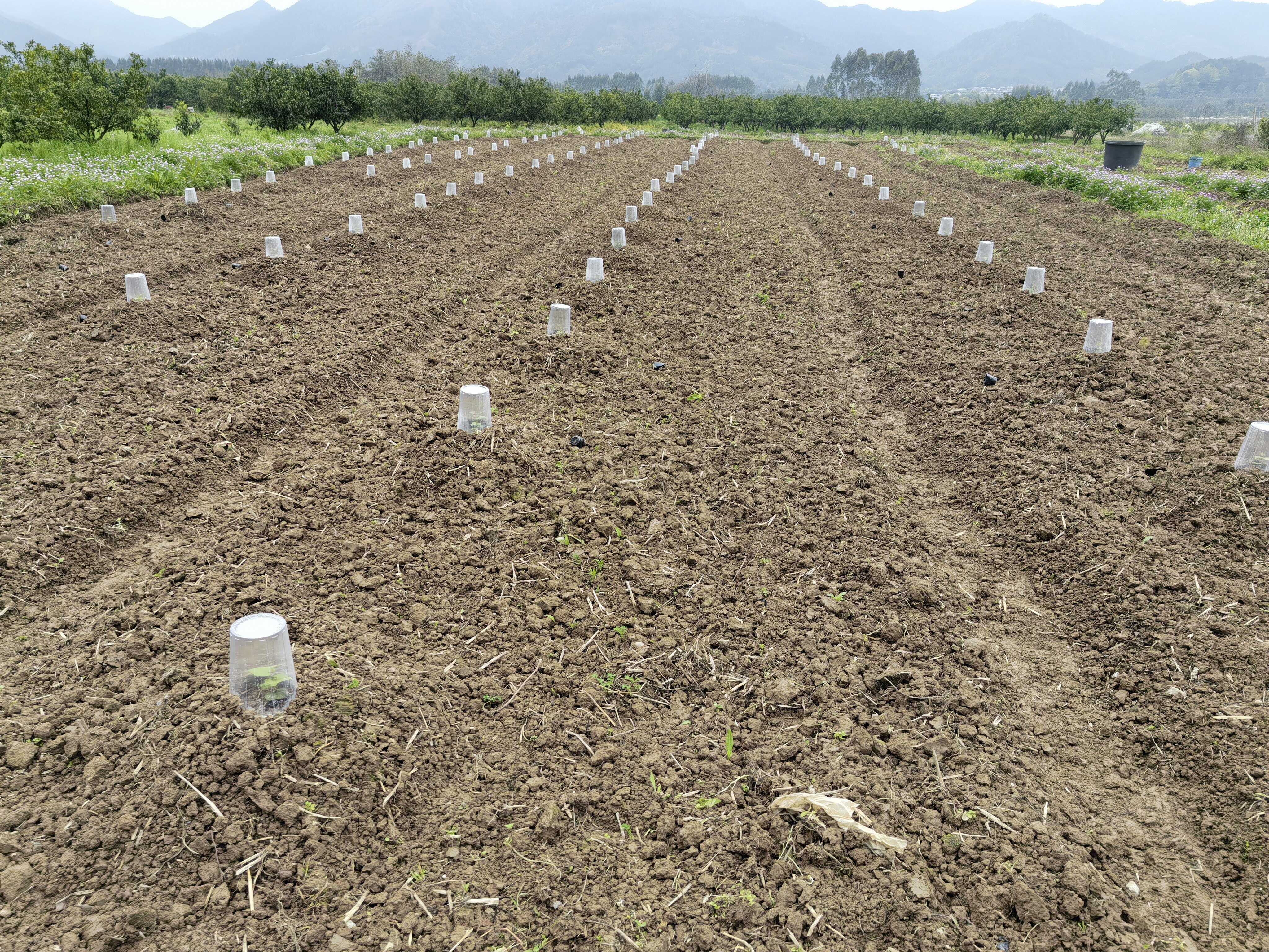这些“白蘑菇”,实则是群众为罗汉果苗精心搭建的“保护罩”。罗汉果苗娇嫩,移栽初期最怕低温、雨水冲刷和虫害侵扰。套上白色透明塑料筒,既能防寒保温,又可阻隔雨水直接冲击根部,还能有效防止害虫啃咬,为幼苗营造一个温暖、稳定、安全的生长环境。正是这小小的创举,让罗汉果苗从智能育苗大棚到自然田间安家扎根有了更好的保障,让新质生产力和传统罗汉果种植有了融合的切入点。“白蘑菇”护着罗汉果绿,一白一绿相映成趣,既是群众智慧的生动体现,也寄托着他们对丰收的殷切期盼。