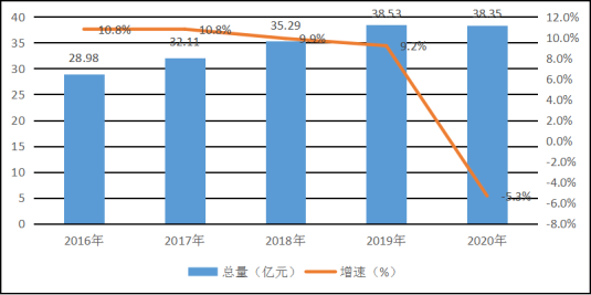 2020年,全县实现社会消费品零售总额38.35亿元,比上年下降5.3%.按经营单位所在地分,2020年,城镇社会消费品零售额22.20亿元,下降3.0%;乡村社会消费品零售额16.15亿元,下降8.3%.