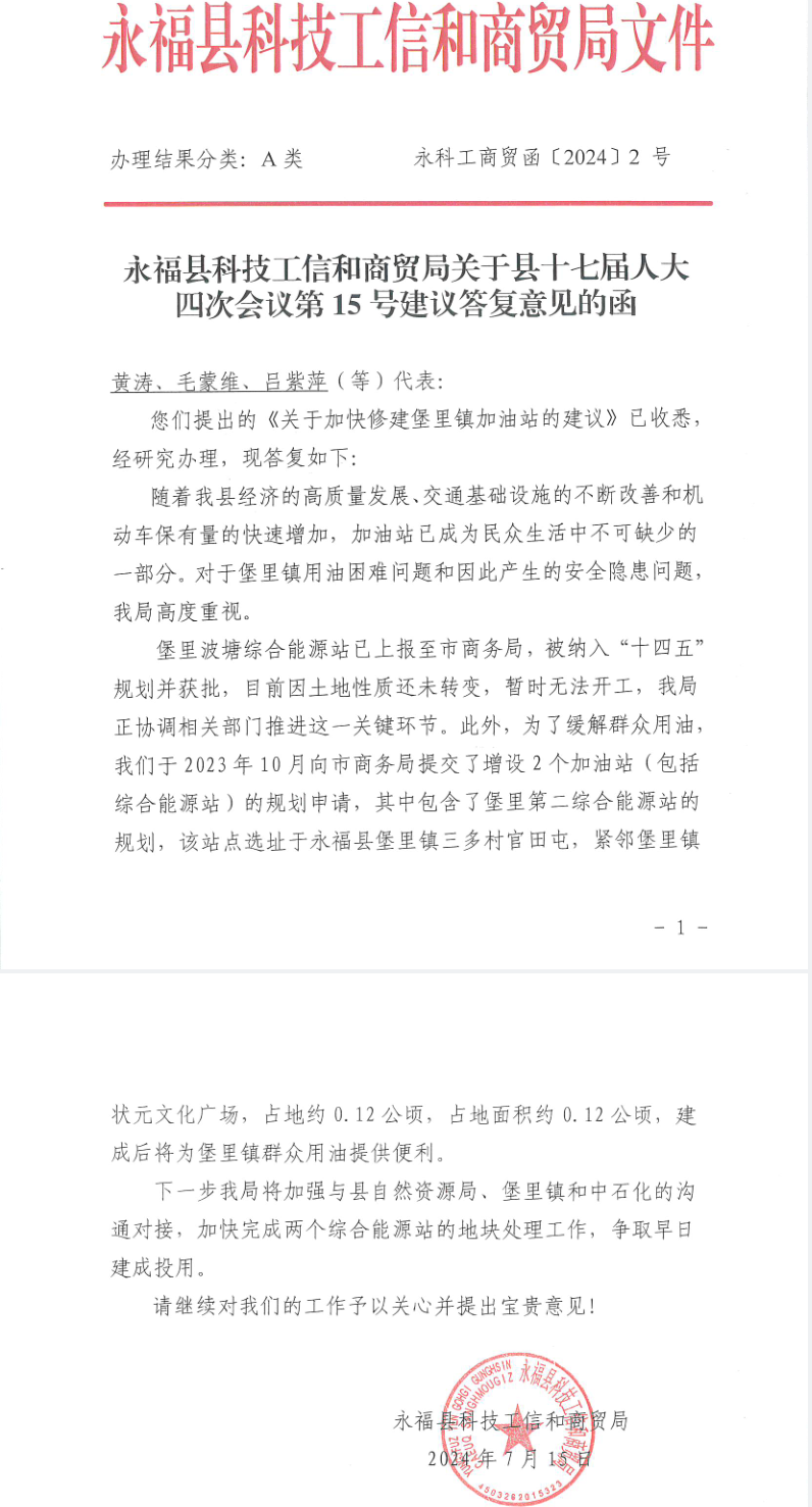 永福县十七届人大四次会议第15号建议的答复