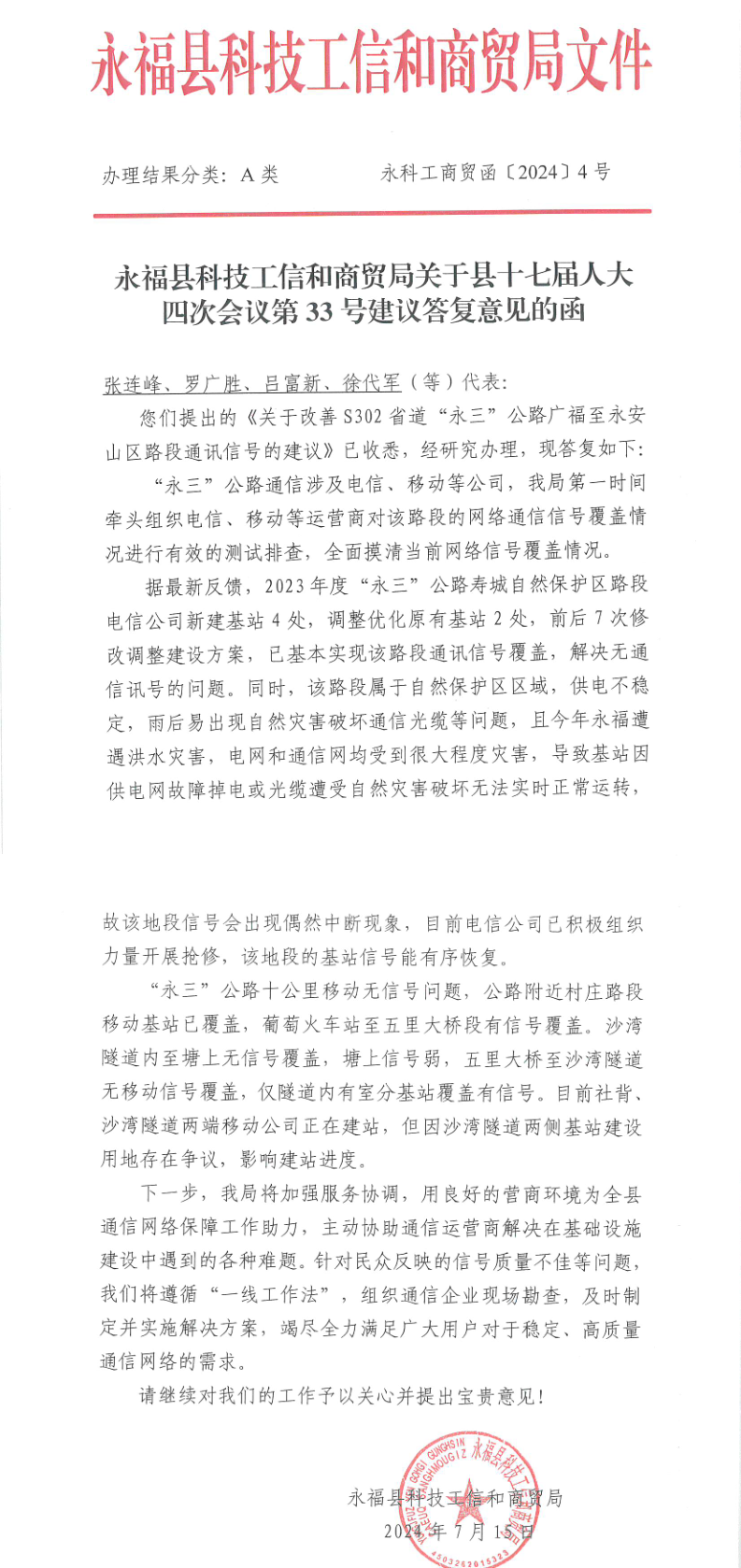 永福县十七届人大四次会议第33号建议的答复
