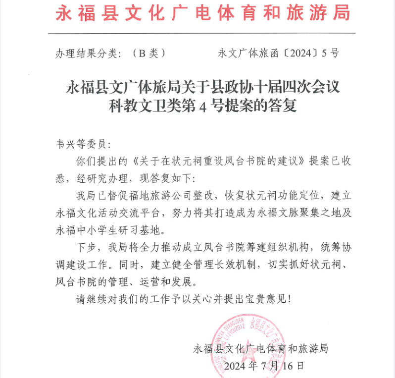 永福县文化广电体育和旅游局关于县政协十届四次会议科教文卫类第4号提案的答复