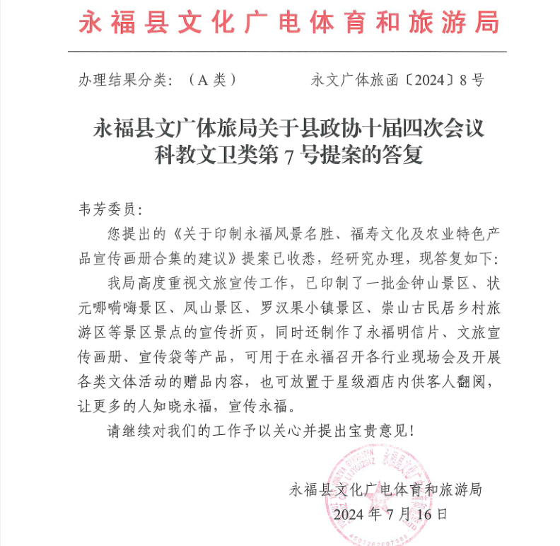 永福县文化广电体育和旅游局关于县政协十届四次会议科教文卫类第7号提案的答复