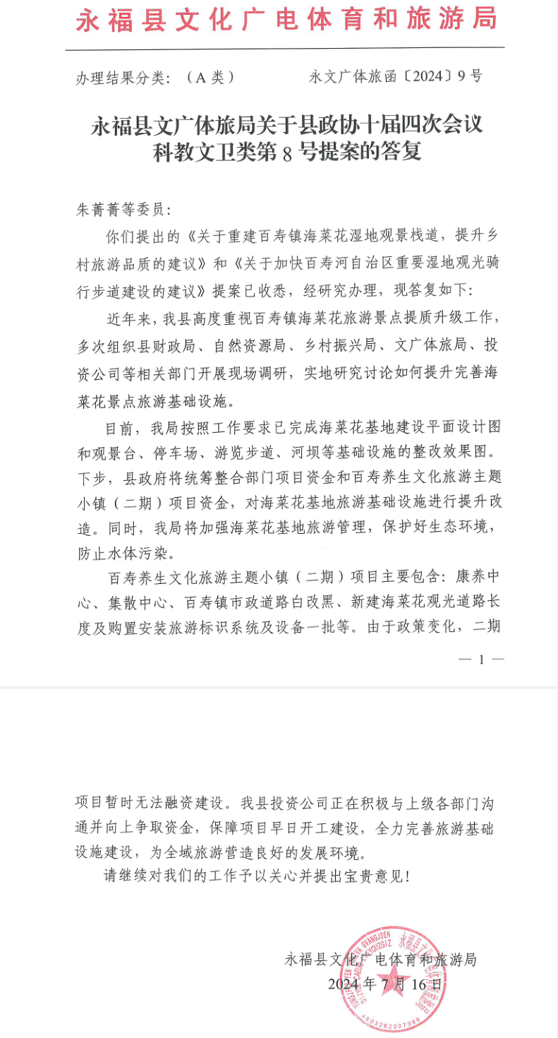 永福县文化广电体育和旅游局关于县政协十届四次会议科教文卫类第8号提案的答复