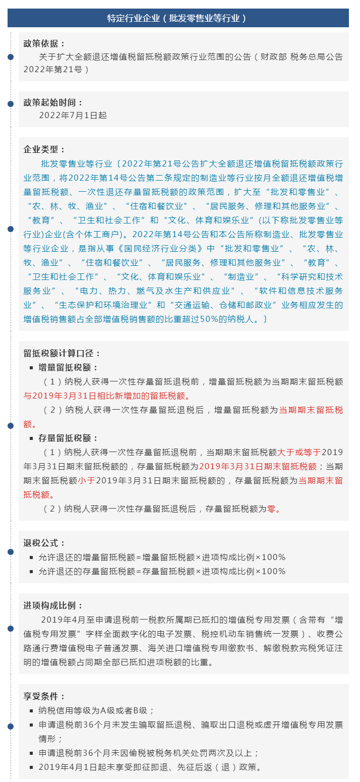 【政策解读】 一般企业、特定行业企业如何享受增值税留抵退税政策?