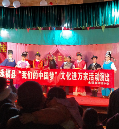 永福县非物质文化遗产(彩调)传承保护中心于2022年1月11日至14日在龙江乡保安村开展“我们的中国梦”文化进万家惠民演出共计5场,演出节目有《状元与乞丐》、《赶子牧羊》、《嫌贫爱富》。现场观众800人次。