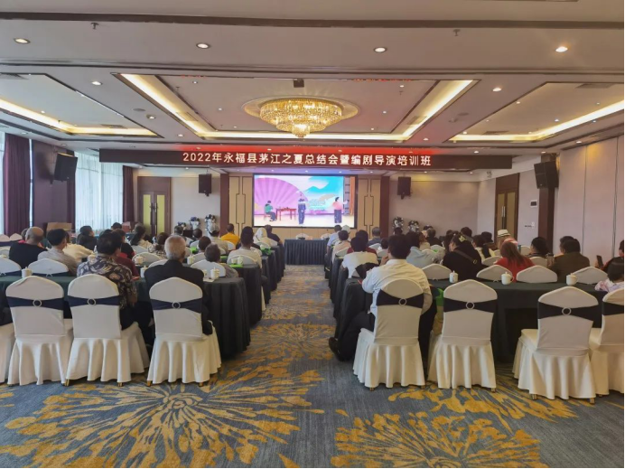 为繁荣我县彩调文化,培养彩调编剧、彩调导演队伍人才,推出更多彩调精品剧目,总结第37届“茅江之夏”农村彩调大赛相关经验,文化馆于10月26日-28日在福龙湾大酒店举办了2022年永福县茅江之夏总结会暨编剧导演培训班。