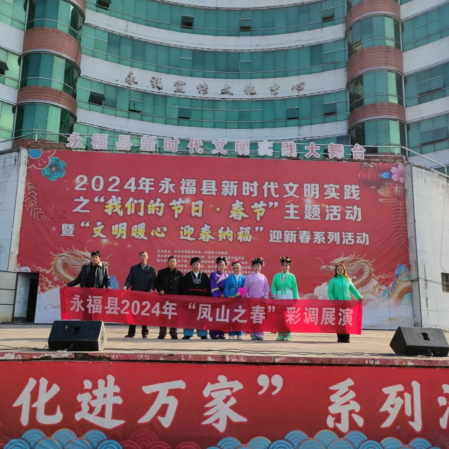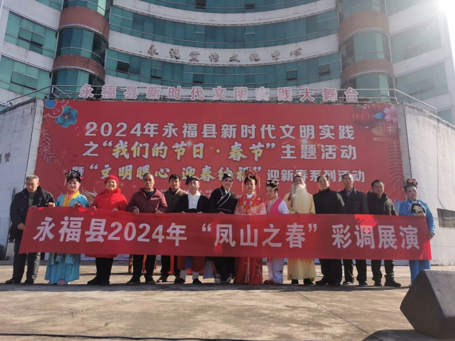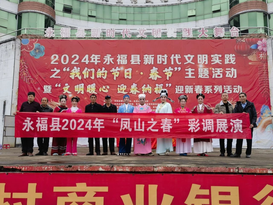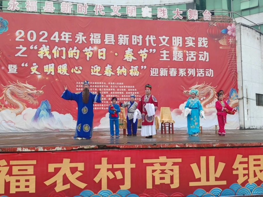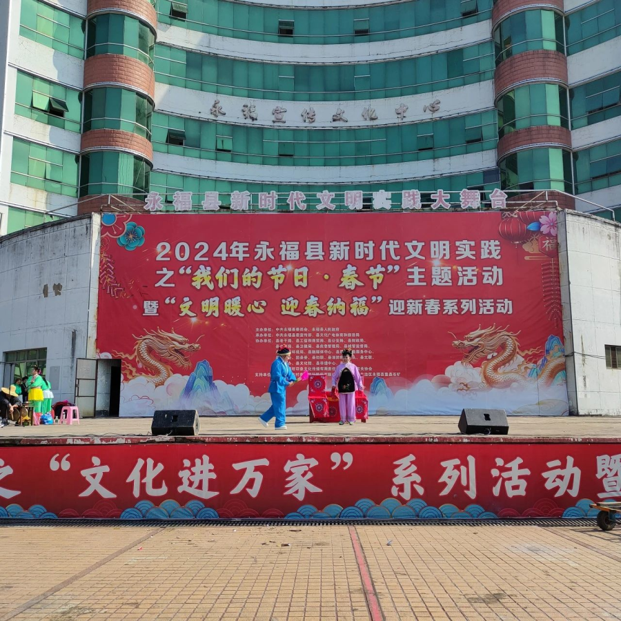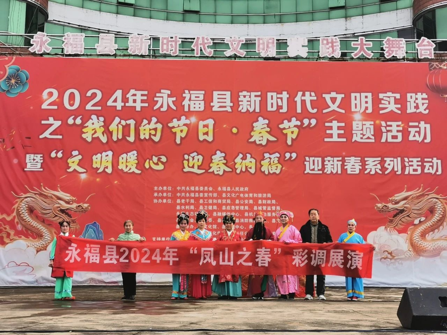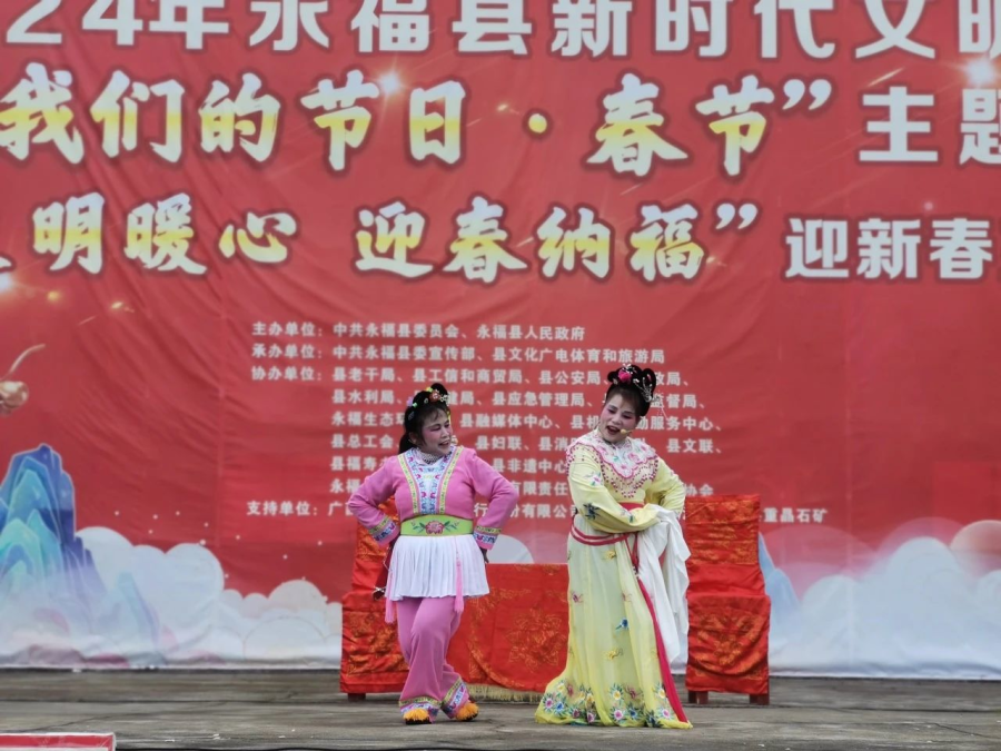 过大年看大戏。一方水土养一方人,永福人当然最爱看彩调,“哪嗬嗨呀”热热闹闹的唱起来,过年期间,福寿广场的舞台上《金玉缘》、《秦光明上京》等大戏轮番上演,彩调爱好者们好好地过了一把瘾。