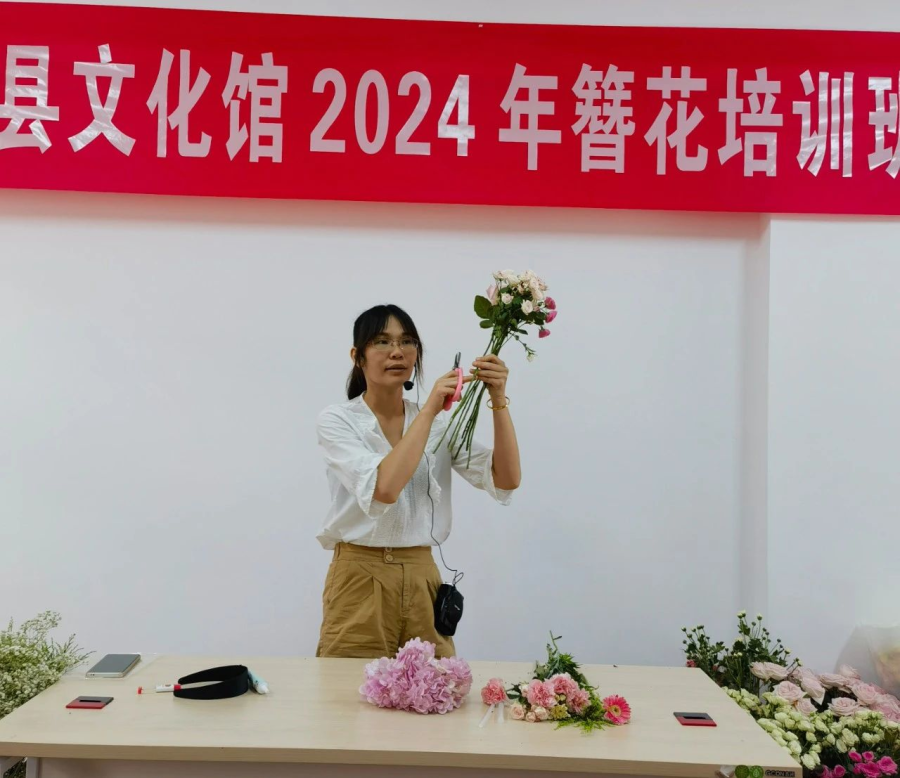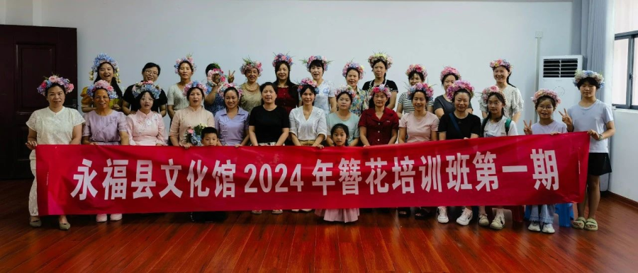 花朵是美好事物的象征,以花草作为配饰,古已有之。簪花起源于宋代,距今已有近千年的历史。7月5日永福县文化馆举办了2期簪花培训活动,让群众感受簪花的魅力。