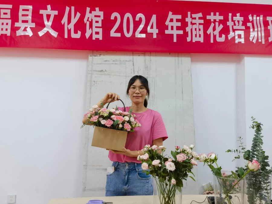 美丽的花朵让人流连忘返,插花艺术激发人们对生活的热爱。为丰富群众文化生活,提升个人艺术素养,永福县文化馆于2024年7月17日举办了两期插花培训活动。