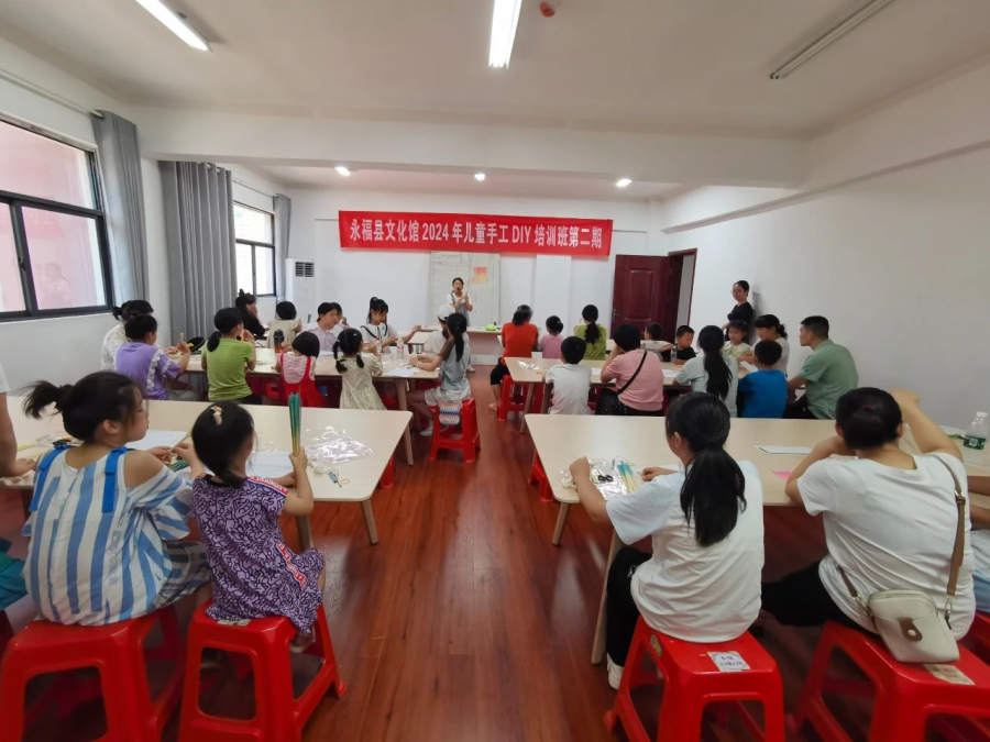 为进一步丰富未成年人暑期文化生活,弘扬中华优秀传统文化,传承非遗技艺,让未成年人体悟匠心精神,营造积极向上的文化氛围,永福县文化馆于7月19日举办了两期儿童手工DIY(手工编织小竹扇)培训体验活动。