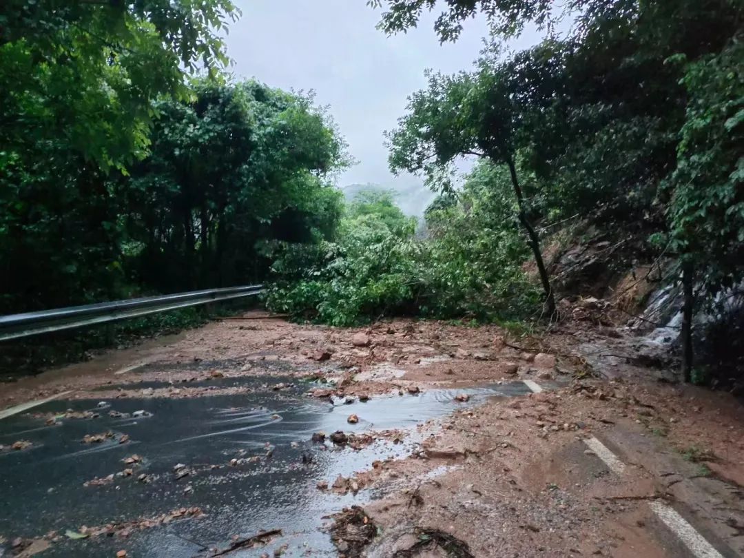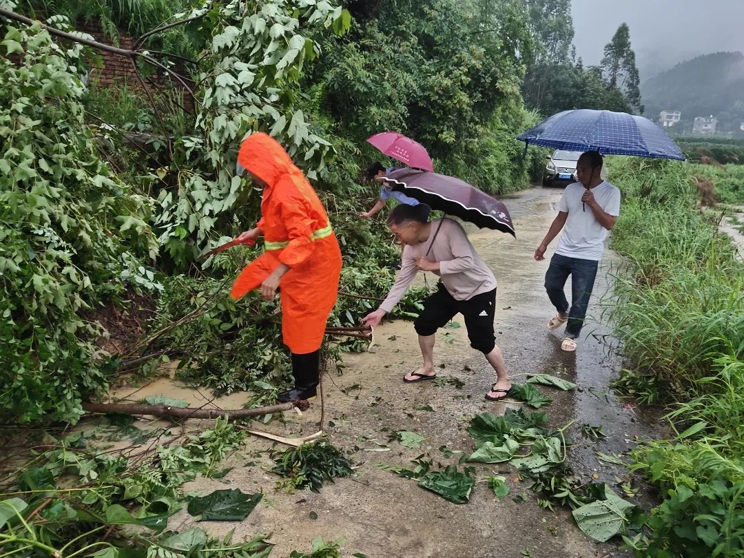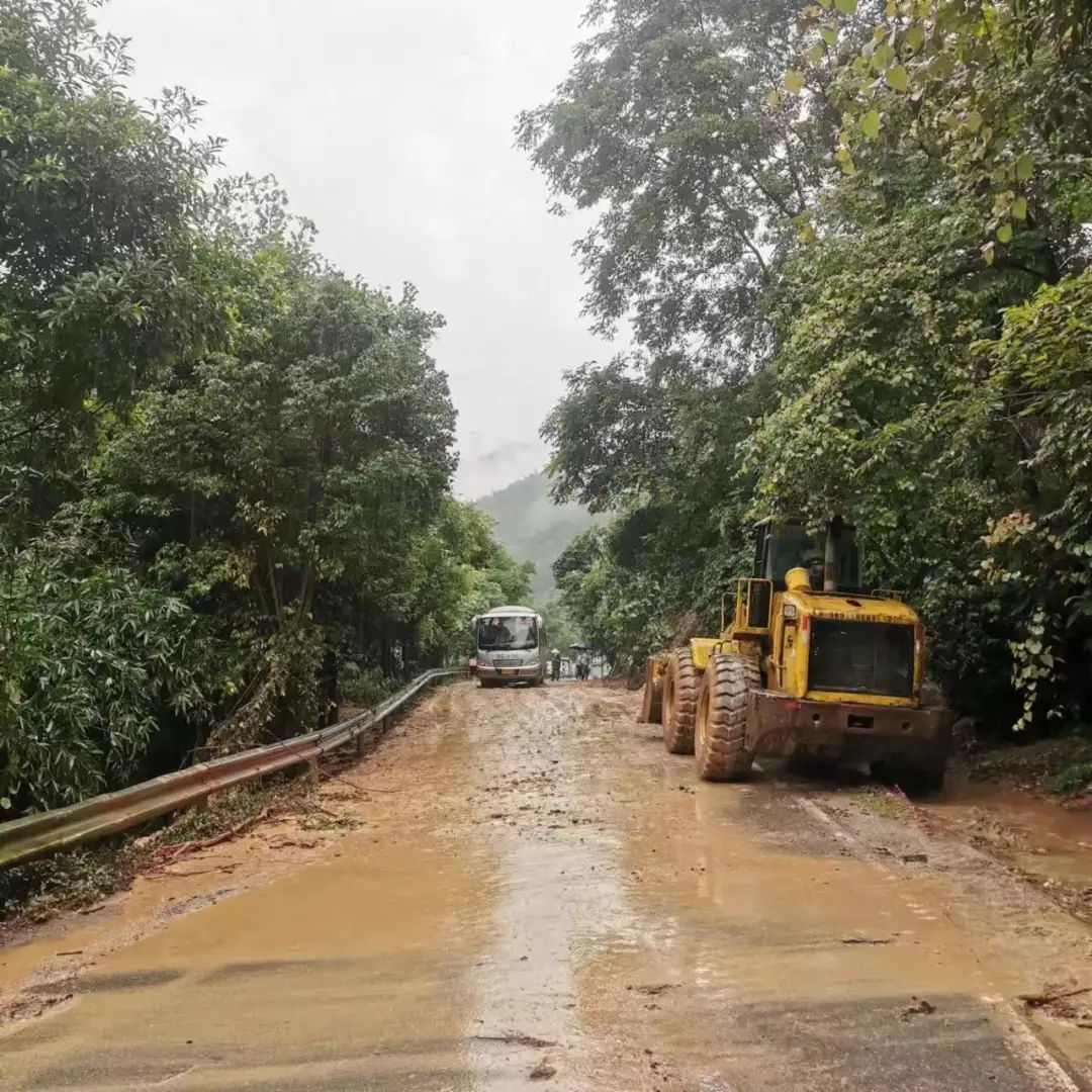 这暖心一幕还发生在广福乡龙桥村山口屯,塌方导致村道路受阻,村干部、村民协力将路障清除。