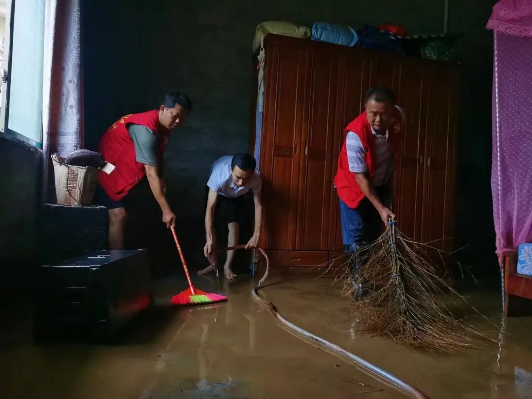 洪水无情,人间有爱,龙溪村驻村工作队收悉村民家里受灾后,立即赶赴现场帮助村民清理房屋。