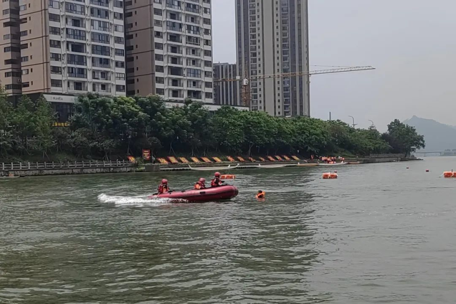 永福县应急管理局副局长李德平:“我县进入主汛期以来,已经历了多轮强降雨。为提高应急救援能力和多部门协调救援水平,联合多部门开展水域应急救援综合演练,切实提高应急救援队伍实战水平及第一时间救灾响应能力,有效保障人民群众生命财产安全,并为即将到来的龙舟赛水上安保工作做好准备。”