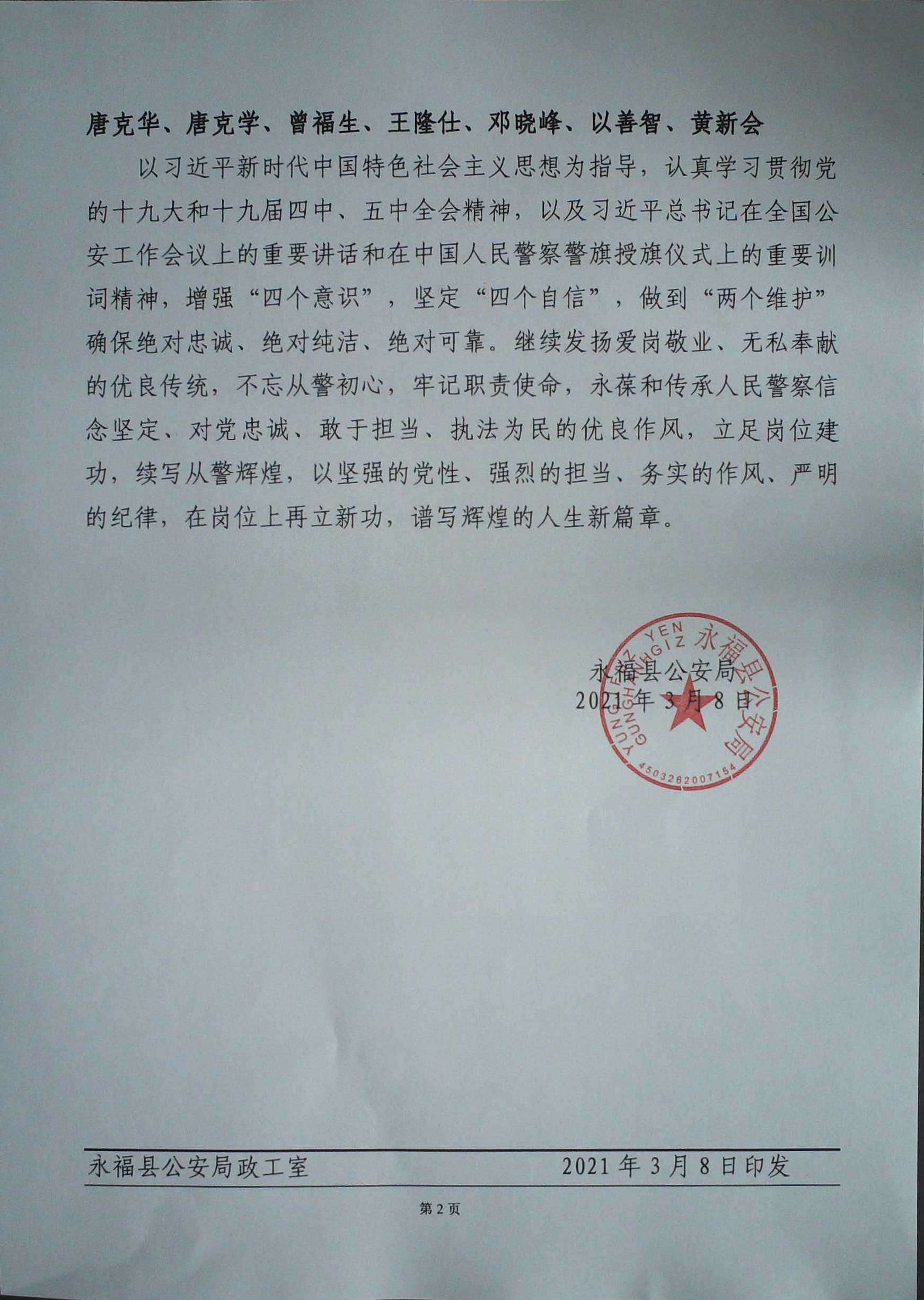 永福县公安局政工室