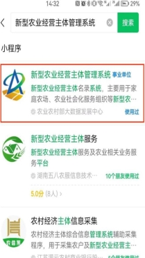 家庭农场主通过微信搜索小程序“新型农业经营主体管理系统”,进入后点击“全国家庭农场‘一码通’管理服务系统”。