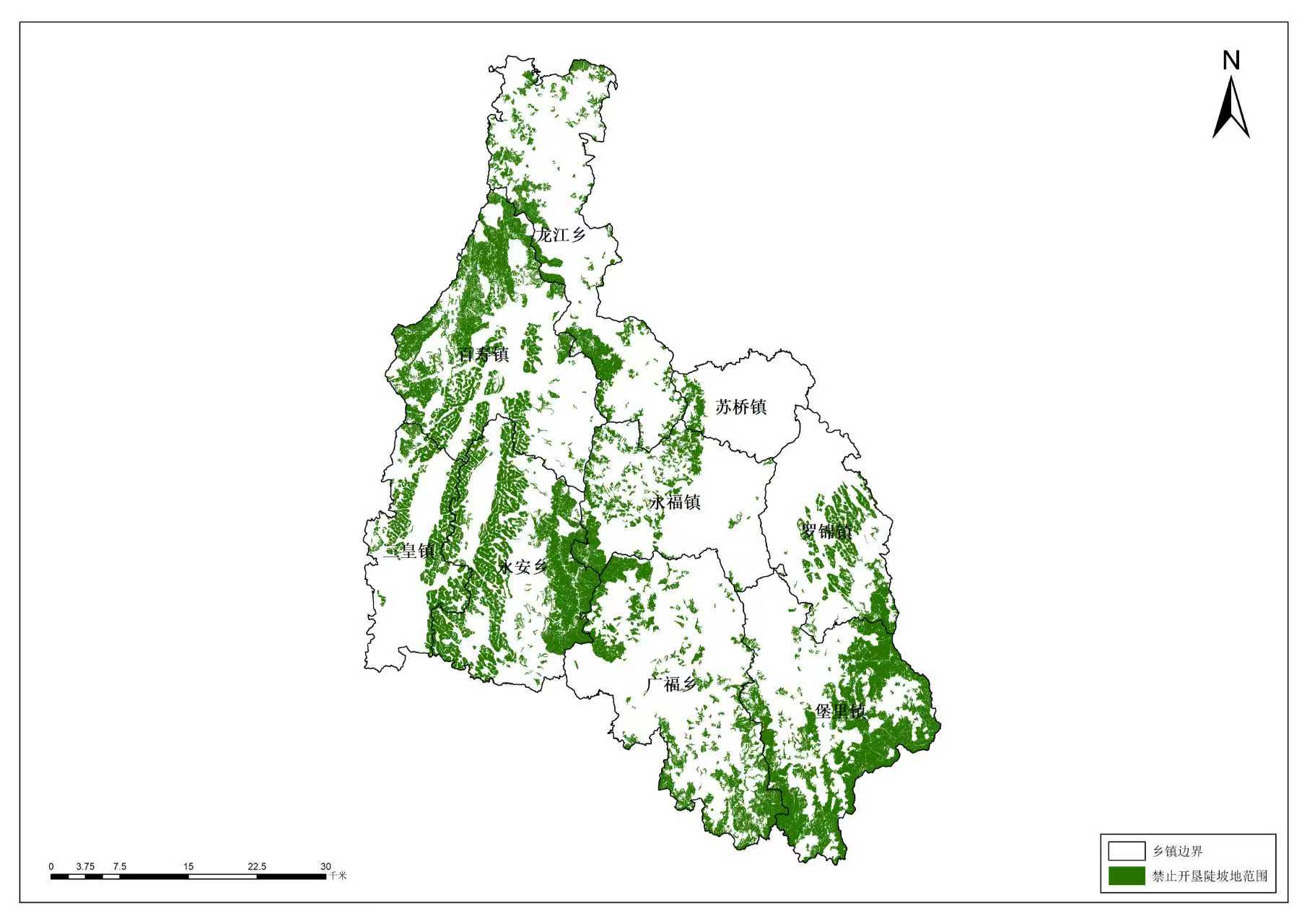 (一)我县划定的禁止开垦陡坡地面积为787.59km²(详见附图),具体范围请到县水行政主管部门查询。