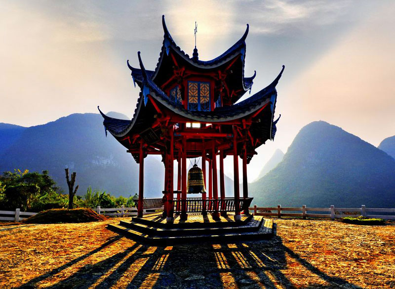 该风景区位于桂林市永福县罗锦镇东南7公里的大西村南登屯金钟山附近。该风景区最著名的就是金钟岩,岩洞内步步皆景,景象变幻无穷,最为奇特的是:在一个洞内,可以观赏到四季不同的神奇景致,这在大桂林其他岩洞中是绝无仅有的。正如中国地质学会洞穴研究会会长、中国地质学院岩溶地质研究所朱学稳教授所说:“此岩洞是百里挑一的世界奇洞,完全可以开发成世界性的好游览点。”洞外山峰叠翠,非岩溶丘陵区植被覆盖良好,郁郁葱葱,有四季常绿的楠竹,有秋红满天的枫树林,还有花香四溢的茶树林。良田阡陌,小径曲曲折折,村落星星点点,一派独特的农乡田园风光,四季均可开展不同主题的旅游活动,是游览观光、度假、周末休闲、会议、科学考察、探险、登高等回归大自然的好去处