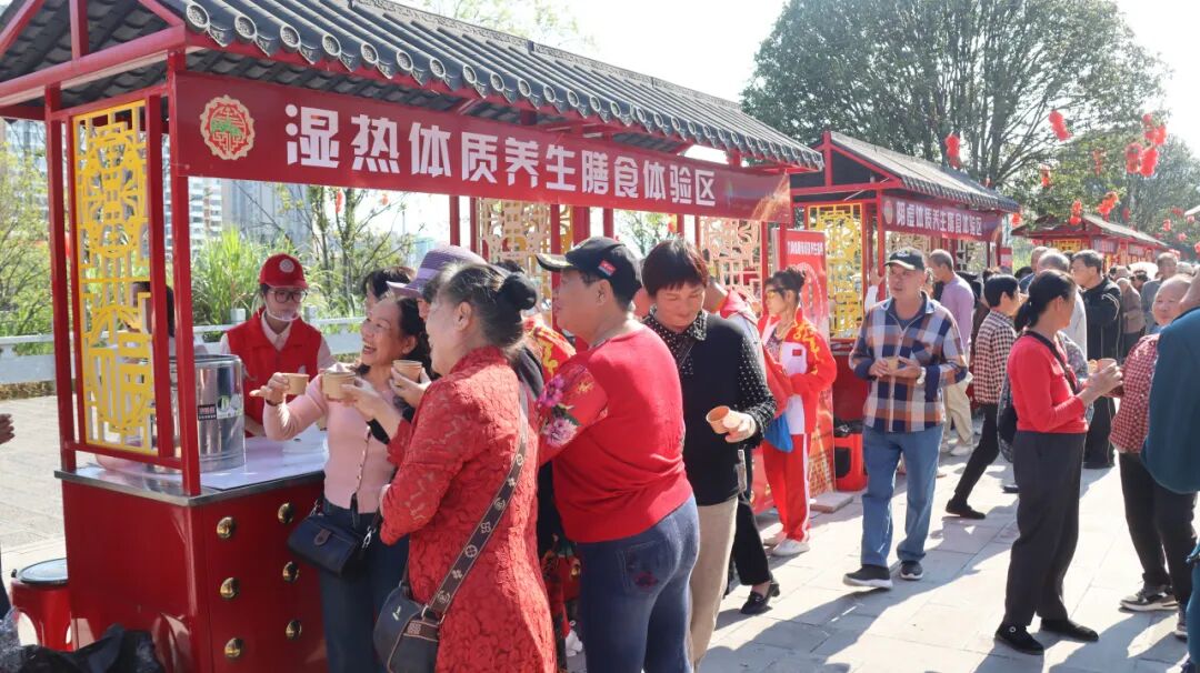 第十四届桂林永福福寿节之药膳集市活动在状元坊内举行,县中医院研究出九种体质养生膳食汤菜(茶饮)供市民及游客朋友免费品尝,向大众普及和推广中医膳食养生知识。 王琰 摄