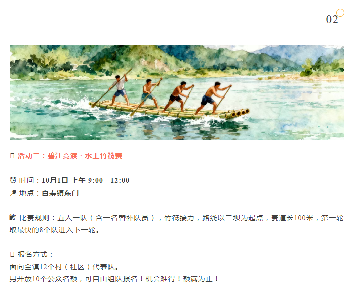 双节反向游 | 百寿镇超全游玩攻略来袭,竹筏赛、音乐派对、打卡赢好礼……等你嗨玩!