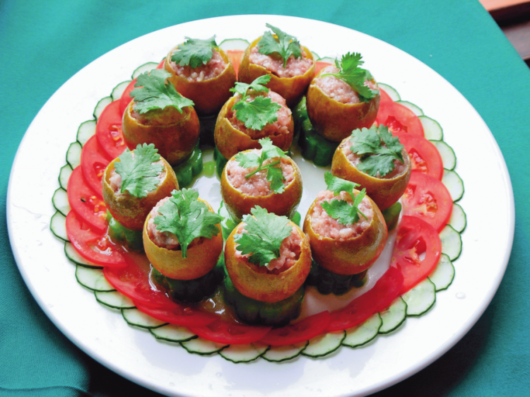 包有生包、熟包之分,酿也有生酿、熟酿之别。有的花样简便,普通人家皆可制作,如生菜包、蛋包、豆腐包、苦瓜酿、茄子酿、豆腐圆、笋壳酿、菜叶包、南瓜花酿、佛果酿等。有的则需要烹调技艺精湛的厨师方能制作,如酿大肉、金银套、水晶豆腐、酿肠花、怀胎鸡、竹叶鸡、五福鱼、胎泥鳅、酿田螺、四季青、瓜盅、常安宫丁、金丝豆芽、八宝葫芦鸭、绵羊苏、春卷、红欢喜等。