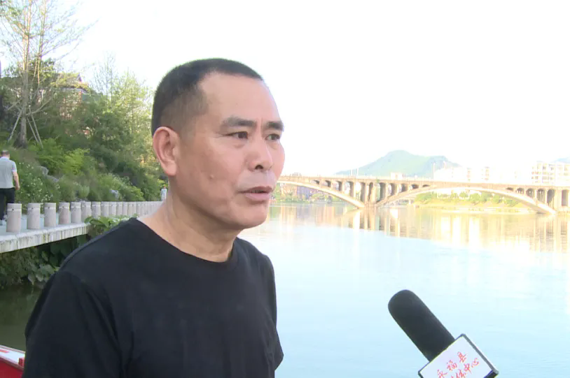 百寿镇龙舟队队长秦小刚:“去年我们是永福乡镇龙舟队冠军,今年我们有信心继续夺冠。”