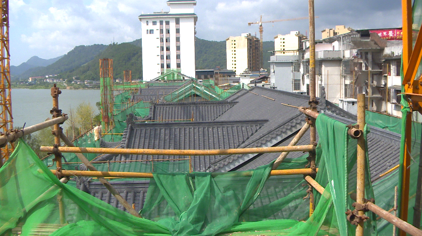 近日,记者在项目施工现场看到,为争取状元巷环境综合整治项目早日完成施工并投入使用,工人们顶着烈阳热浪,在进行屋面仿古瓦的铺装、消防水电的预埋及内外墙的抹灰等工作,现场一派繁忙景象。