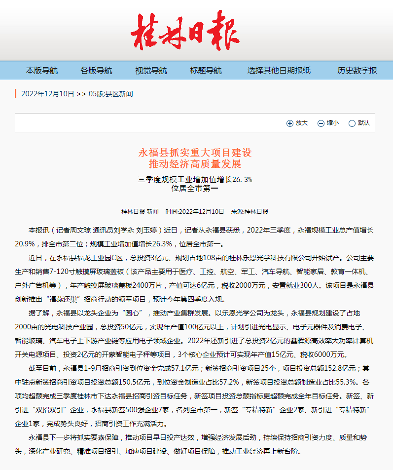 【媒体看永福】桂林日报 | 永福县抓实重大项目建设推动经济高质量发展