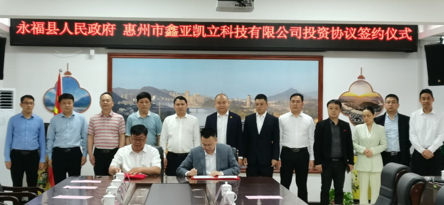 4月14日上午,永福县人民政府与惠州市鑫亚凯立科技有限公司签订鑫亚凯立新材料项目投资协议。该项目从洽谈到签约仅用1天时间,真正跑出了永福项目签约的“加速度”,为推动永福工业振兴注入强劲动力。