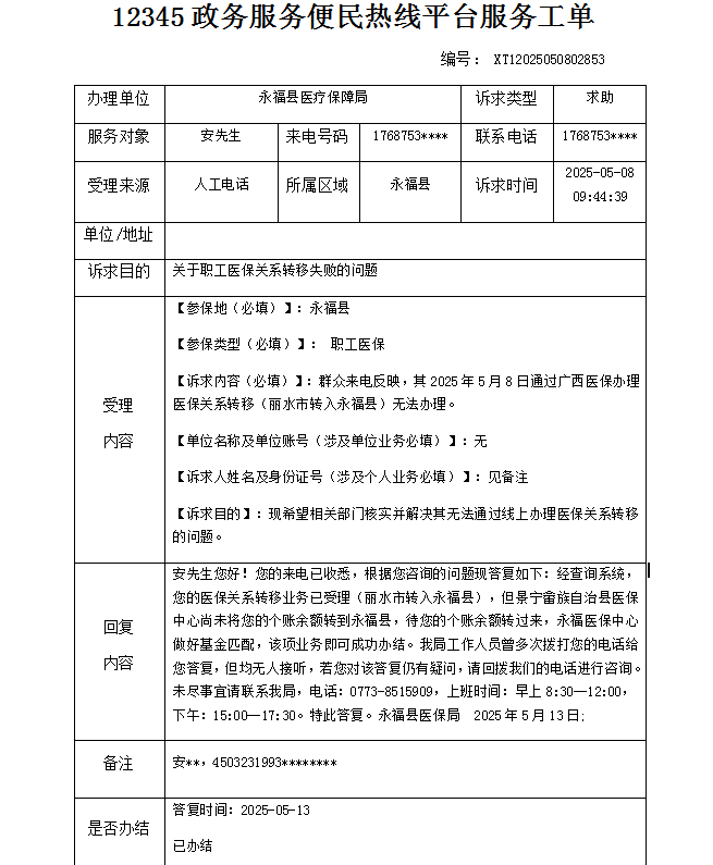 关于职工医保关系转移失败的问题