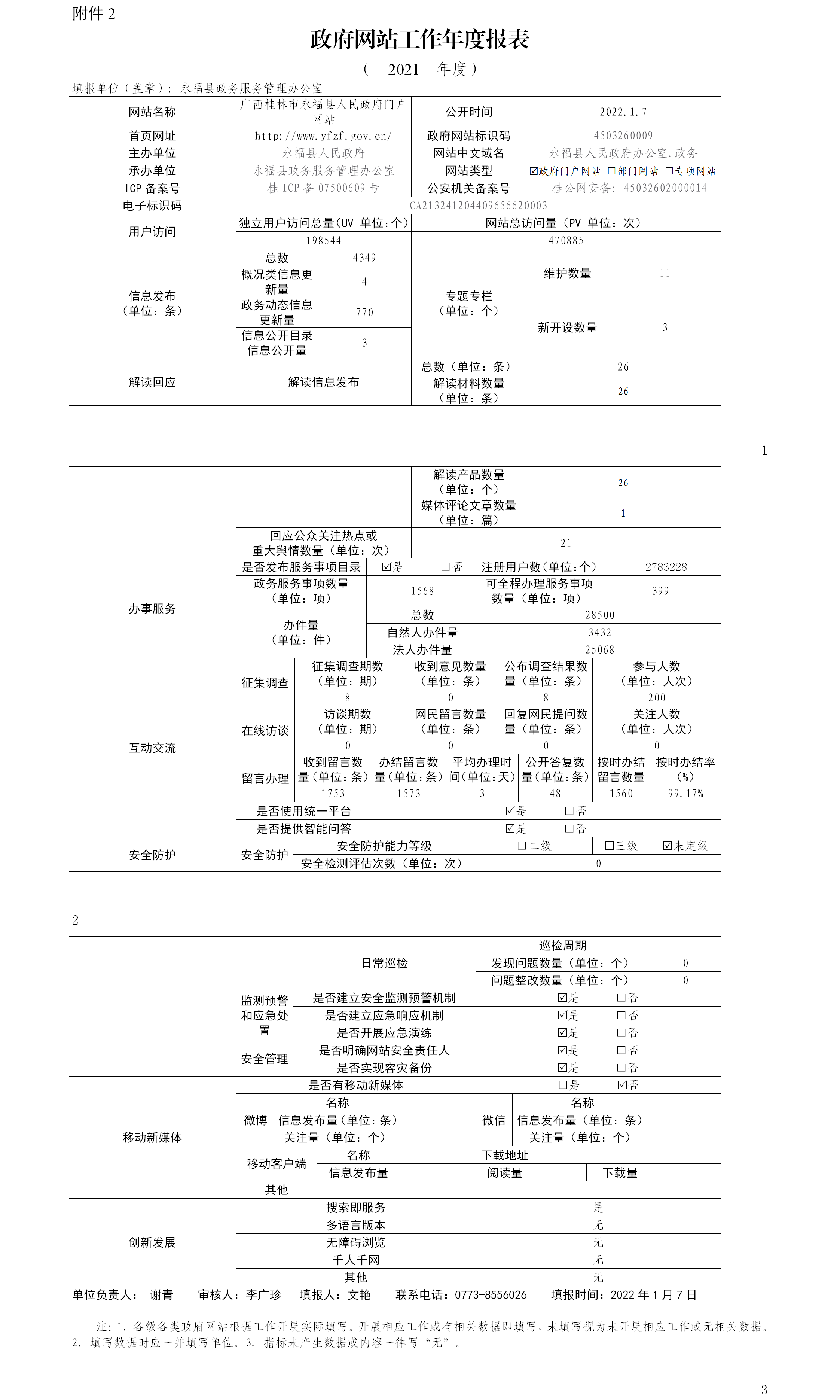 2021年政府网站工作年度报表(永福县)